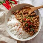 Once the chicken is cooked through and the sauce is just right, remove the pan from heat. This is the moment to adjust seasoning or add a few extra slices of fresh chili if you want to dial up the heat. Everything at this point is ready to be ladled generously over steamed jasmine rice for a comforting, flavorful meal.