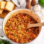 Reheat leftovers on the stove over medium-low heat, stirring occasionally to prevent sticking. Add a splash of water or broth if the sauce has thickened too much. You can also reheat in the microwave, covered, using short bursts to keep the pasta tender and sauce evenly heated.