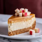 - Serve: Drizzle the cooled apple cider caramel evenly over the chilled cheesecake. Optionally, garnish with fresh sliced apples before serving.