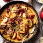 Apple Cider Smothered Chicken is a comforting and flavorful dish featuring thin-cut chicken breasts smothered in a rich apple cider and cream sauce, topped with melted Gruyère cheese and crispy prosciutto. This recipe combines savory herbs, sweet apples, and a perfectly caramelized onion base to create a delicious meal that’s perfect for a cozy dinner.