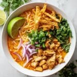 Keywords: Khao Soi, Thai coconut curry noodles, Northern Thai recipe, coconut milk curry, chicken noodle soup, crispy noodles, Thai street food