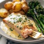 Reheat leftovers gently on the stove or in the oven to avoid drying out the salmon. Warm the sauce separately over low heat and pour it over just before serving to keep it creamy and fresh. Avoid microwaving directly as it can cause the salmon to become tough and the sauce to separate.
