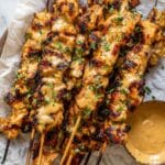 Store cooked chicken skewers in an airtight container in the fridge for up to 3 days. Keep the bang bang sauce separate for best texture and fresh flavor upon reheating.