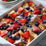 This Berry French Toast Casserole is a delightful breakfast dish featuring moist and tender French bread cubes soaked in a rich egg and milk custard, baked to perfection with a slightly crusty top. Topped generously with fresh strawberries and blueberries, it’s sweetened with brown sugar and enhanced with cinnamon and vanilla. Perfect for make-ahead meal prep, it’s finished with a dusting of powdered sugar and served with maple syrup for a classic comforting start to your day.