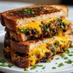 This Black Bean Grilled Cheese is a delicious and hearty twist on the classic grilled cheese sandwich. Packed with a flavorful black bean mixture seasoned with cumin, smoked paprika, and a hint of lime, it offers a satisfying vegetarian meal perfect for lunch or a quick dinner. The melted cheddar or Monterey Jack cheese complements the smoky, savory beans, all grilled to golden perfection.
