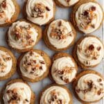 Delight in these moist and flavorful Carrot Cake Cookies topped with rich brown butter cream cheese icing and toasted pecans. These cookies combine the comforting spices of traditional carrot cake with the convenience of a handheld treat, perfect for any occasion.