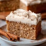- Garnish and Serve: Sprinkle a little ground cinnamon on top of the frosting, then cut the cake into 16 slices and serve.