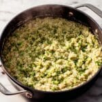 This cheesy rice pairs beautifully with grilled chicken, pan-seared salmon, or roasted pork tenderloin—complementing all with its rich yet fresh character.