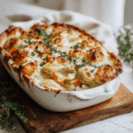 A creamy, golden-baked potato gratin layered with tender vegetables and smothered in a rich cheese sauce. This dish is both comforting and hearty, making it perfect as a vegetarian main or a luxurious side dish for family dinners, holiday tables, or casual gatherings. With a crisp, cheesy top and soft, flavorful interior, it’s a crowd-pleaser through and through.