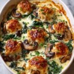 Keywords: chicken casserole, low carb casserole, spinach mushroom chicken bake, healthy chicken dinner, cheesy chicken casserole