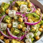 A fresh and flavorful Chickpea Feta Avocado Salad combining creamy avocado, tangy feta, and fresh herbs, perfect for a quick, healthy meal or side dish.