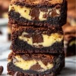 A small square baking pan around 8×8 inches works perfectly. It keeps the layers thin and ensures each bite is just the right size and thickness for that fudgy-cheesecake harmony.