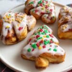 Create a festive and fun Christmas Tree Cinnamon Rolls treat using Pillsbury Grands! cinnamon rolls, perfect for holiday gatherings. This easy-to-make recipe shapes cinnamon rolls into a tree, bakes them to golden perfection, and tops with sweet icing and colorful sprinkles for a delightful seasonal dessert.