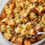 Keywords: classic stuffing, holiday stuffing, sourdough stuffing, savory side dish, baked stuffing, Thanksgiving recipe