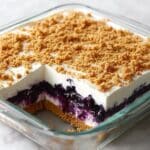 - Finish with Whipped Topping and Chill: Gently spread the remaining half (8 oz) of the whipped topping over the blueberry layer, covering it completely. For an attractive finish, sprinkle additional graham cracker crumbs on top if desired. Refrigerate the dessert for at least 2 hours before serving to ensure it sets well and the flavors meld perfectly.