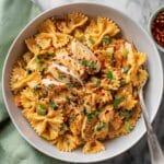 Drain the pasta, reserving some pasta water in case you need to adjust consistency. Add the pasta directly to the pan, tossing to coat every bowtie in the luscious sauce. Stir in Parmesan cheese for creaminess and umami depth. If the sauce feels too thick, a splash of pasta water will loosen it up beautifully.