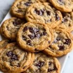 Keywords: chocolate chip cookies, crispy chewy cookies, dark chocolate cookies, homemade cookies, classic dessert