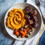 - Finish and Serve: Once cooking is complete, carefully remove the ribs and vegetables from the crockpot and set aside. Discard the herbs and reserve the cooking liquid. Serve the ribs immediately with mashed sweet potatoes, drizzling the reserved liquid on top for extra richness and flavor.