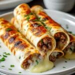 - Assemble Roll Ups: Spoon the cheesy beef and vegetable mixture evenly onto each low-carb tortilla. Roll each tortilla tightly to encase the filling.