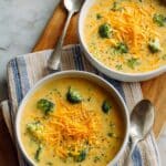 Place any leftover soup in an airtight container and refrigerate for up to 3 days. Because this Easy Broccoli Cheddar Soup Recipe contains dairy, it’s best enjoyed fresh but still holds up well when chilled.