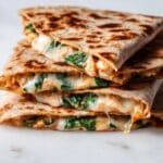 - Toast the Quesadillas: Heat a non-stick pan with a little olive oil over medium heat. Place each folded quesadilla in the pan and cook until the underside is golden brown, then carefully flip and toast the other side until equally crisp and the cheese is melted inside.