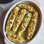 Delicious and creamy Feta Cheese Stuffed Zucchinis baked to perfection with a blend of feta, Gruyere cheese, Greek yogurt, herbs, and spices. This easy vegetarian recipe features tender zucchini boats filled with a flavorful, cheesy mixture, making it a perfect appetizer, side dish, or light meal.