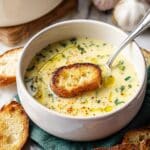 French Garlic Soup is a comforting and flavorful broth-based soup made with simmered garlic, fresh sage, and a creamy homemade mayonnaise that enriches the soup’s texture. This delicate and velvety soup offers a unique balance of savory garlic notes with a smooth, creamy finish perfect for a light starter or warming meal.