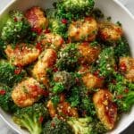 This Garlic Butter Chicken Broccoli recipe offers a quick, flavorful, and healthy meal perfect for busy weeknights. Tender chicken pieces are seared to golden perfection, combined with crisp-tender steamed broccoli, and coated in a rich garlic butter sauce infused with soy sauce, lemon juice, and optional red pepper flakes. Garnished with sesame seeds and fresh parsley, this dish pairs wonderfully with rice, pasta, or cauliflower rice for a satisfying and balanced dinner.