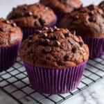 Let the muffins rest in the pan for about 5 minutes before transferring them to a rack. Cooling completely helps them set and intensifies their chocolatey goodness.