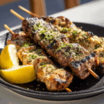 Juicy marinated chicken and beef skewers grilled to smoky perfection, finished with fresh herbs and a squeeze of lemon – a Mediterranean street food classic that’s perfect for any meal.