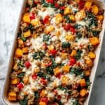 This Ground Turkey Sweet Potato Bake is a hearty and nutritious casserole that combines lean ground turkey with sweet potatoes, bell peppers, spinach, and a blend of herbs and cheeses. Perfectly seasoned and baked to golden perfection, it offers a comforting meal packed with protein and vibrant vegetables.