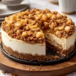 This irresistible Apple Crumble Cheesecake combines a smooth, creamy cheesecake layer with a sweet, spiced apple topping and a buttery graham cracker crust. Perfect for any occasion, this dessert features a velvety filling and a crunchy crumble that will leave you craving more.