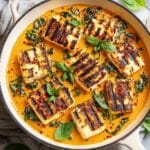 To make a vegan version, swap the halloumi for a firm tofu or vegan cheese that grills well. Replace heavy cream with coconut cream or a cashew cream, and use a vegan Parmesan alternative. The flavors will still shine in that creamy tomato sauce.