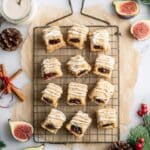 Traditional Italian Fig Cookies, known as Cucidati, featuring a rich dough filled with a sweet, spiced fig and date mixture soaked with rum, baked to a golden perfection and finished with a lemon glaze. These cookies are perfect for festive occasions and pair wonderfully with tea or coffee.