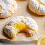 Using a standard cookie scoop (about two tablespoons), portion the dough into balls. Roll each ball in powdered sugar until completely coated for a sugary outer crust that contrasts delightfully with the tangy center.
