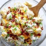 This Loaded Baked Potato Salad Recipe keeps well in the fridge for up to four days when stored in an airtight container. Flavors deepen over time, so leftovers taste even better the next day. Just be sure to give it a gentle stir before serving again.
