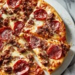 Slice while warm and dig into this carnivore’s delight. Each bite delivers a symphony of juicy, cheesy, crunchy, and meaty flavors you’ll crave again and again.