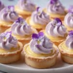 Delight in these elegant Mini Lemon Tarts topped with a delicate lilac-hued meringue, perfect for a spring dessert. The crisp tart shells encase a smooth, tangy lemon curd, finished with softly toasted meringue peaks tinted with a subtle violet shade and garnished with edible lilac flowers for a beautiful floral presentation.