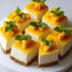 These Mini Mango Cheesecake Cubes are a delightful, refreshing dessert featuring a buttery graham cracker crust topped with a creamy mango-flavored cheesecake filling. Perfectly portioned into bite-sized cubes and garnished with fresh mango slices and mint leaves, this no-bake treat is ideal for gatherings or a sweet indulgence anytime.
