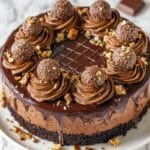 PrintNutella Cheesecake with Chocolate Ganache and Ferrero Rocher Toppings Recipe