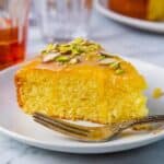 Serve leftover Persian Love Cake at room temperature or warmed slightly, paired with a little cream or yogurt. It’s delicious on its own or even as an accompaniment to a cup of tea or coffee.