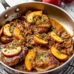 This Pork Chops with Apples recipe is a delicious and simple skillet meal perfect for a quick weeknight dinner. Juicy bone-in pork chops are pan-seared to golden perfection, then simmered with tender sliced apples, yellow onions, and fragrant spices like rosemary, cinnamon, and nutmeg. The dish is finished with a flavorful pan sauce made from chicken stock and a touch of flour to thicken, creating a comforting blend of savory and sweet flavors in under 30 minutes.