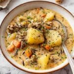This hearty Potato and Sausage Chowder is a comforting, creamy soup packed with flavorful sausage, tender potatoes, and wholesome wild rice. Simmered with aromatic vegetables and herbs, and finished with a touch of cream, it makes a satisfying meal perfect for chilly days or anytime you crave a rich, warming dish.