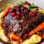 Keywords: slow braised beef roast, cranberry balsamic glaze, beef chuck roast recipe, oven braised beef, hearty beef dinner
