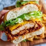 Toast your burger buns until lightly golden for that ideal soft-yet-slightly-crunchy texture. Spread a generous amount of the spicy sauce on both the top and bottom buns. Layer the crispy chicken, a slice of American cheese, and fresh lettuce on the bottom bun before closing it with the top. Serve immediately and get ready for an explosion of flavors!