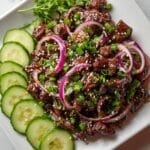 PrintSpicy Keto Korean Ground Beef with Cucumber Salad Recipe