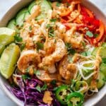 This vibrant and fresh Spring Rolls Bowl recipe combines tender sautéed shrimp with crisp vegetables, creamy avocado, and perfectly cooked rice noodles, all tossed with a flavorful homemade peanut sauce. Ready in just 30 minutes, it’s a light and satisfying meal inspired by the classic spring roll, deconstructed and perfect for a quick, healthy dinner for four.