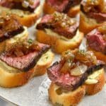 Keywords: steak crostini, creamy horseradish sauce, caramelized shallots, filet mignon appetizer, elegant party bites