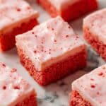 - Apply Glaze: Spread the strawberry cream cheese glaze evenly over the cooled brownies using the back of a spoon or an offset spatula. Add sprinkles if desired.