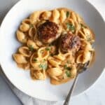 Keywords: Swedish meatballs, pasta bake, creamy meatball casserole, baked pasta, ground beef and pork meatballs, comfort food